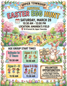 « All Events Easter Egg Hunt March 28 @ 10:30 am - 12:00 pm « Township Committee Meeting Planning Board Meeting » Add to calendar Google Calendar iCalendar Outlook 365 Outlook Live Details Date: March 28 Time: 10:30 am - 12:00 pm Venue Amanda’s Field 1091 NJ Highway Route 50 Petersburg, NJ 08270 United States + Google Map Phone 609-628-2011 Ext 248